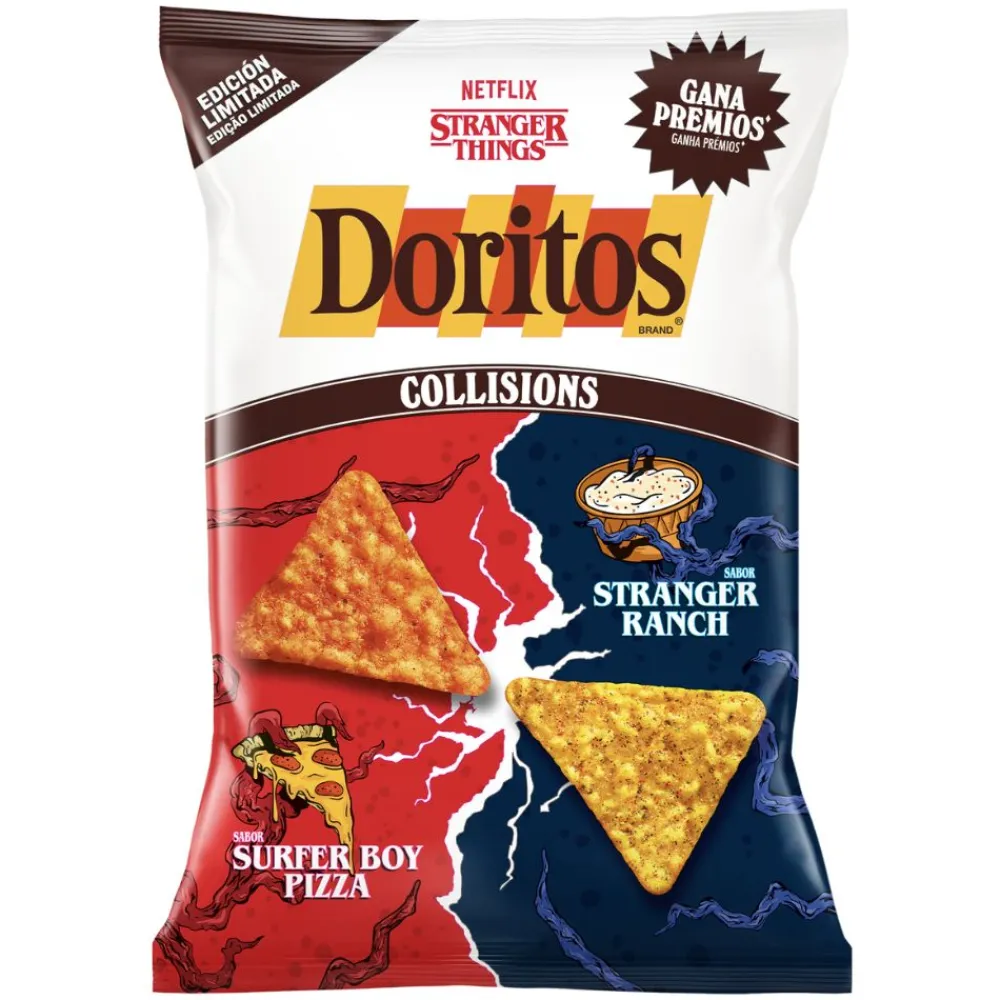 Doritos Collisions Stranger Things, mix di snack di mais al gusto formaggio cremoso e pizza pepperoni da 140g su AmericanUncle