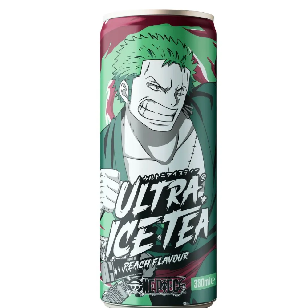 Confezione da 330ml di One Piece Ultra Ice Tea Zoro, tè alla pesca fresco e gustoso. Questa deliziosa bevanda, esattamente come tutti gli altri prodotti della serie One Piece, è caratterizzata da un dettaglio che la rende unica: la lattina da collezione dedicata a Zoro, lo spadaccino della famosa serie. L’aroma dolce e fruttato di pesca fa di questo tè la bevanda perfetta per le tue giornate estive.