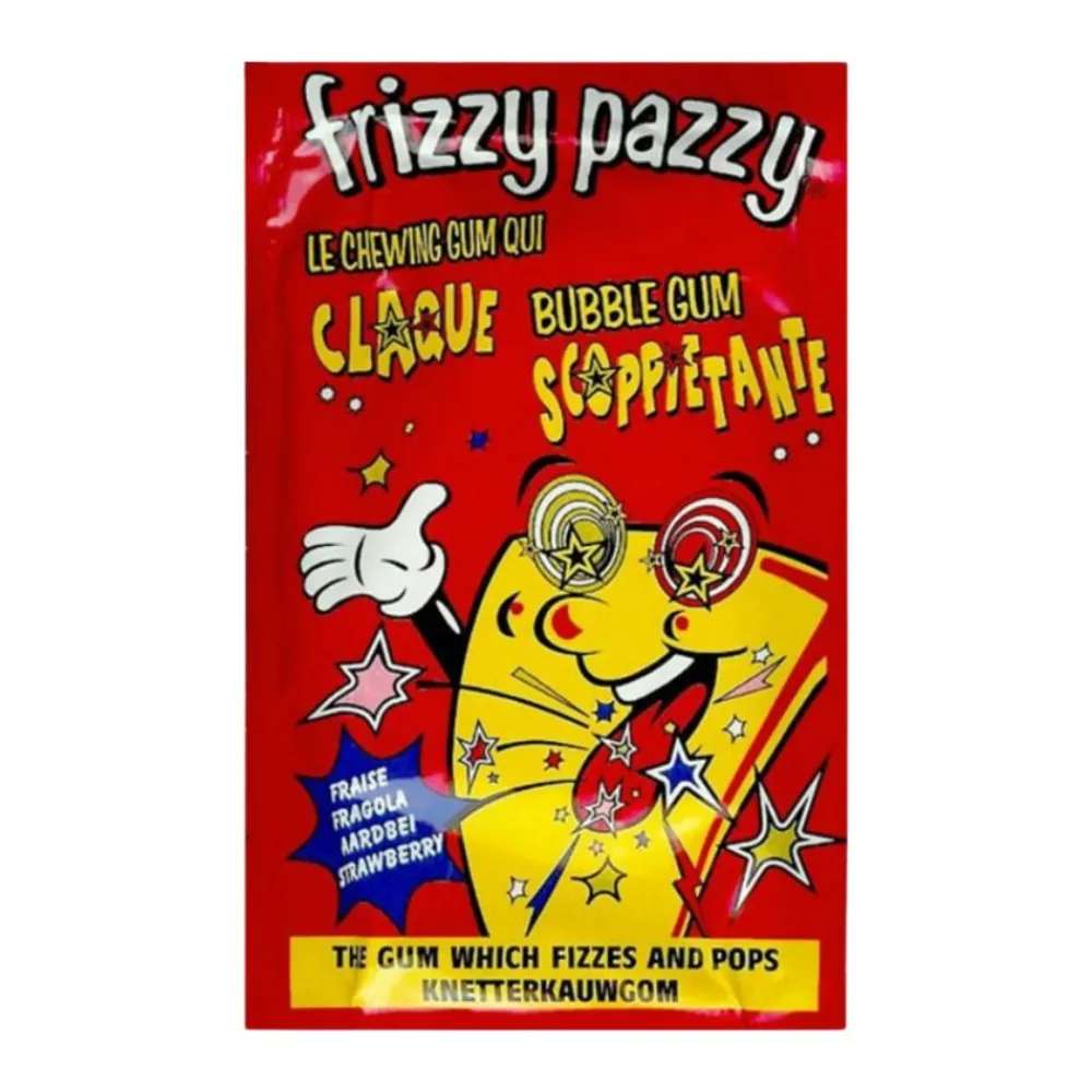 Hai presente le caramelle no? Quei golosi bon bon da mangiare quando ci si sente un po’ giù o per essere ancora più felici del solito? Beh, in questo caso si tratta delle Frizzy Pazzy, gomma da masticare alla frutta con polvere effervescente alla fragola da 7g: deliziosa gomme alla fragola frizzante! Appena poggiata sul palato, ti donerà un’esplosione di gusto e frizzantezza fuori dal normale… che aspetti a prendere questa e tutte le altre delizie da Pazzy?