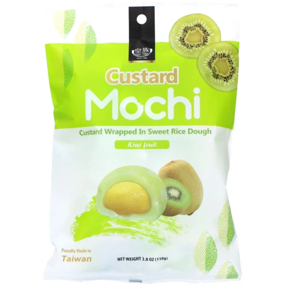 Confezione da 110g di Custard Mochi with Kiwi, deliziosi mochi ripieni di crema di kiwi. Questi mochi, come tutte le merendine giapponesi, sono gommose e irresistibili: nella confezione troverai bocconcini morbidi e dal sapore unico. La combinazione della consistenza gommosa dei mochi e la crema dolce e fruttata di kiwi all’interno ti sorprenderà ad ogni morso. Provali subito e lasciati travolgere dall’autentico gusto giapponese!