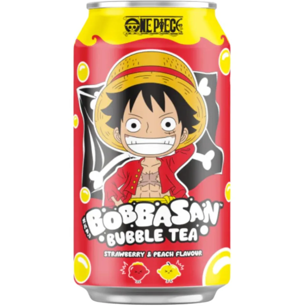 One Piece Luffy Bobbasan Ultra Ice Tea Strawberry & Peach Flavour, bubble tea al gusto di fragola e pesca da 320ml su AmericanUncle